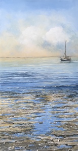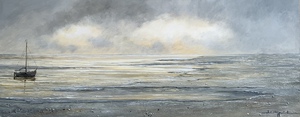 2012Boten op Het Wad, geschilderd op vergrijsd oud hout.