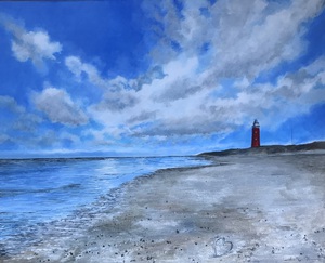 2009De plaats op Vlieland waar we met veel plezier aan terugdenken. Doorgeschilderd op twee doeken. Zand toegevoegd.